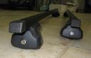 Střešní nosič upevněný do přípravy v karoserii auta, /čepy/, zámek, kovové tyče, nosnost 50 gk, výrobce Hakr ČR.