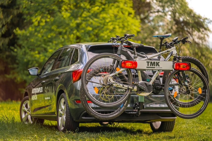Zadní nosič na závěsné zařízení , pro 2 kola -sklopný pro přístup do zavazadlového prostoru auta. Zadní světelná rampa pro spz, váha cca 8kg, nosnost 30kg.